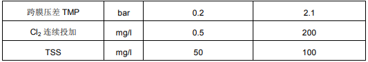 超滤膜推荐清洗操作参数如下表